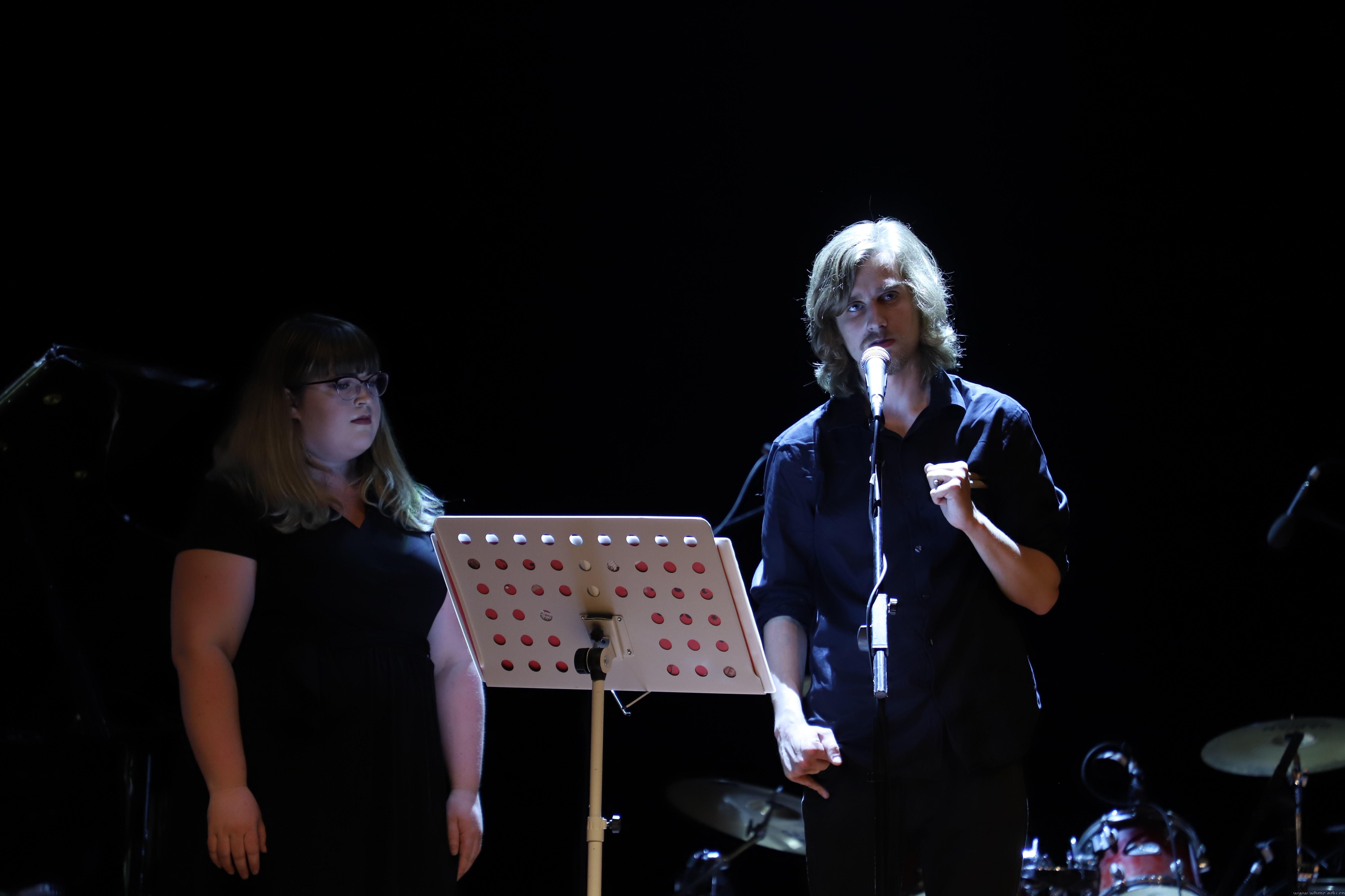 CLC爵士乐团还与我们人文与艺术学院天语合唱团合唱了《再别康桥》《somebody loves me》,乐曲从平缓进入转向高昂,“满载一船星辉,在星辉斑斓里放歌……”合唱团成员时而纵情放歌,时而低沉吟唱。