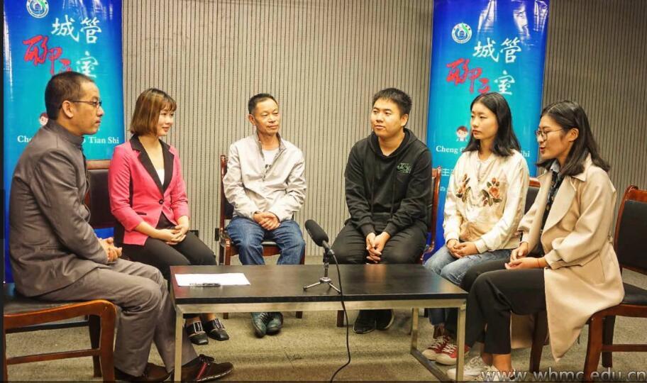 湖北省广播电视台新闻评论员、主持人白水与我们2014级播音与主持艺术专业学生袁慧搭档主持此次节目。江夏区城管委副主任裴建敏和我们3名学生代表作为特邀嘉宾,与现场25名学生观众参与节目的录制。