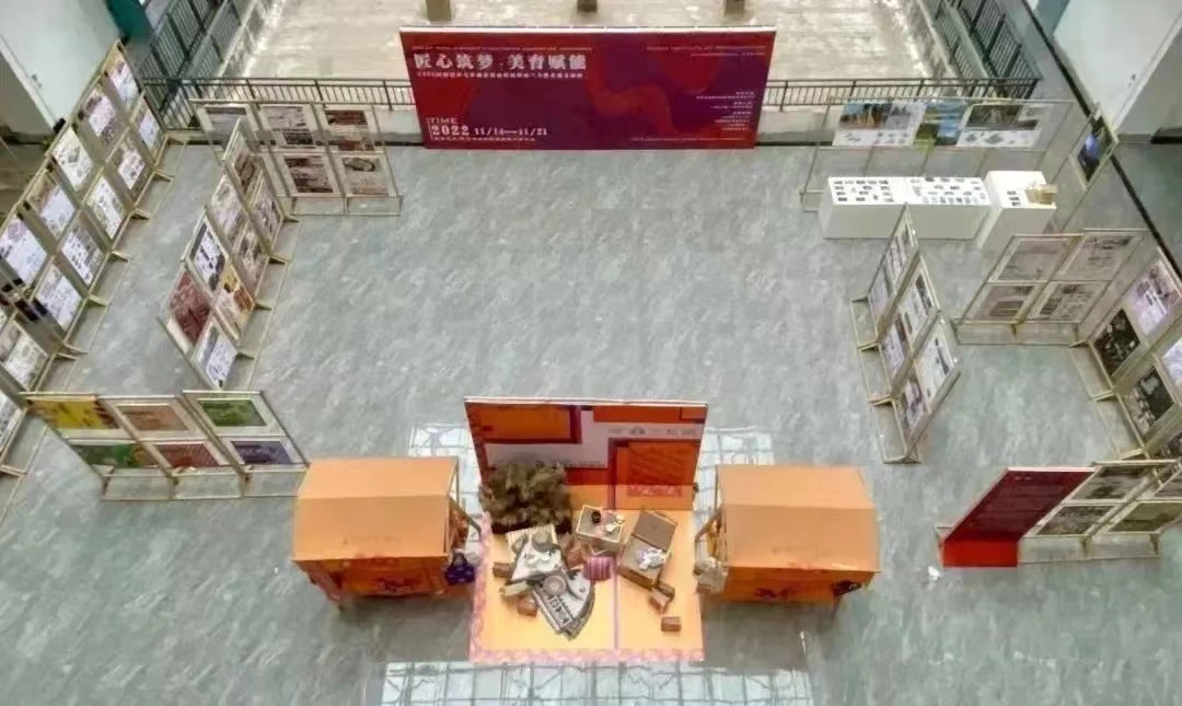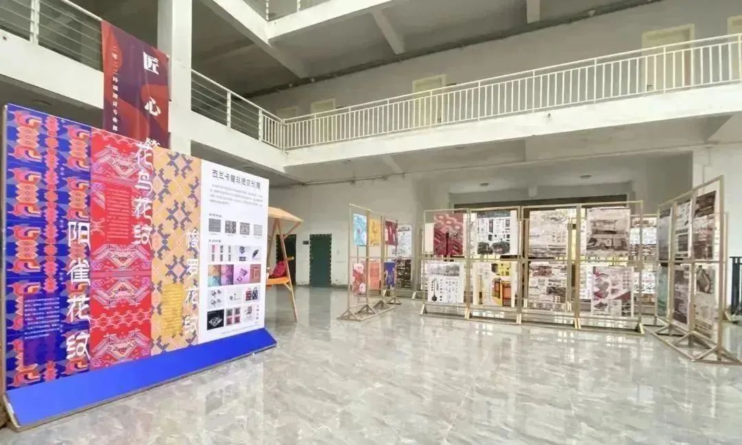 (武传新闻网讯 记者 蔡蕊)11月14日,我们设计学院环境设计专业思政联展暨西兰卡普非遗文创展于四号教学楼二楼中庭举办,本次作品展以“匠心筑梦,美誉赋能”为主题。