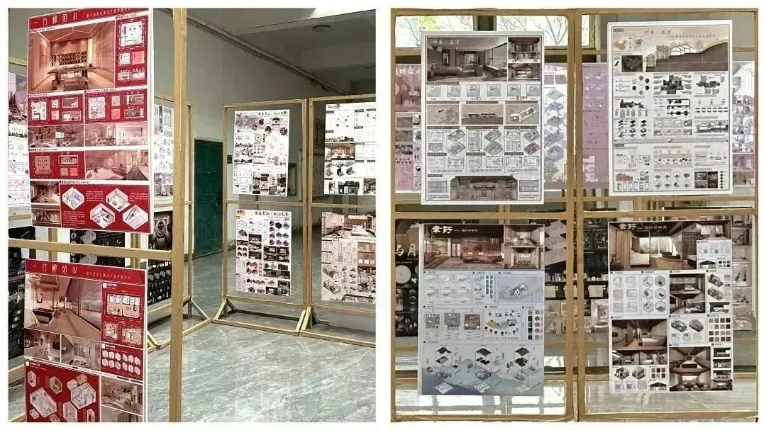 除此之外,现场还陈列了许多来自不同年级学生的设计作品,学生们将思想政治教育元素融入室内设计,每一个作品都向现场观众诠释了作者的设计概念、平面分析、细节分析和效果图,展现了环艺系的专业和特长。