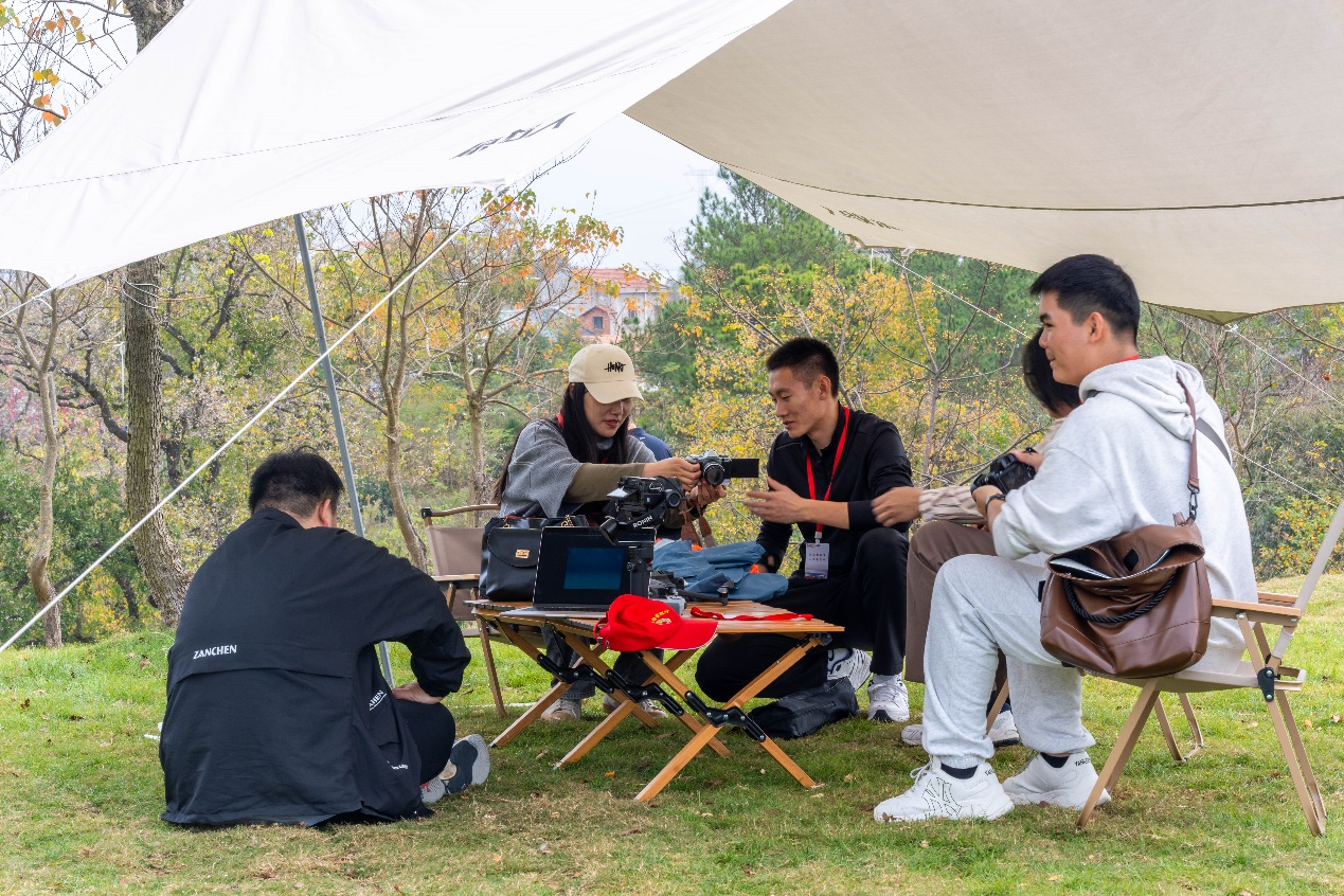 到达景区后,参赛同学们在欣赏美丽红叶的同时展开创作。参赛学生们充分利用自己专业知识和技能,在实地观赏北山红叶景区后,现场进行精心策划,在指导老师的指导下,迅速确定完整的脚本和拍摄创意。