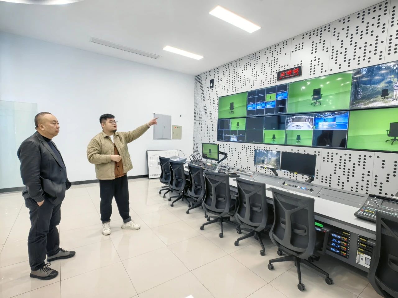讲座结束后,王红卫在我们老师的陪同下前往我们融媒体实验中心进行参观体验。我们设 计学院院长唐茜与王红卫教授在交流时提到,我们设计学院的动画、摄影、数字媒体艺术等专业教学采用在实验室参与融合媒体的作品创作,助力培养学生感知化体验和视觉化设计,实现跨学科融合发展。