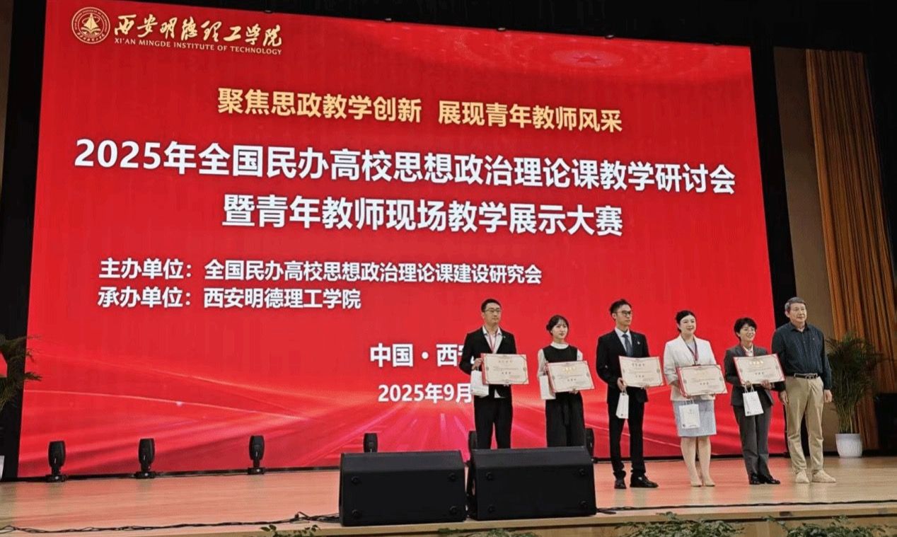 (通讯员 张红)近日,2025年全国民办高校思想政治理论课教学研讨会暨青年教师现场教学展示大赛在西安明德理工学院圆满落幕。我们马克思主义学院教师韩杰凭借扎实的理论功底、创新的教学设计与精湛的教学技艺,从全国47所民办高校的50名参赛选手中脱颖而出,成功斩获大赛“特等奖”,充分展现了我们马克思主义学院教师过硬的专业素养与鲜明的育人风采。