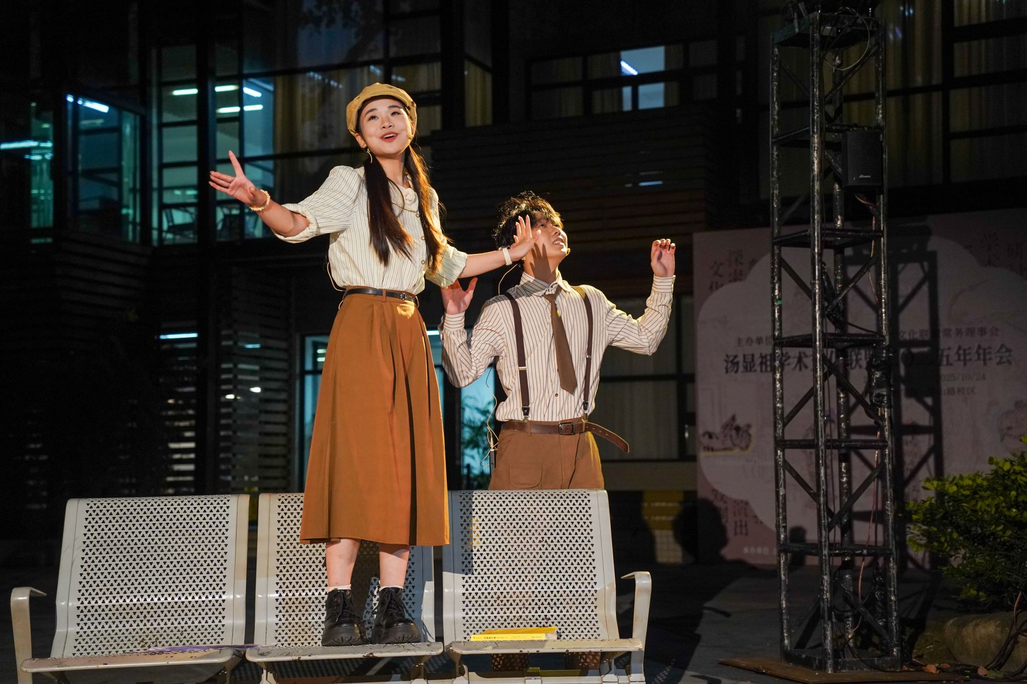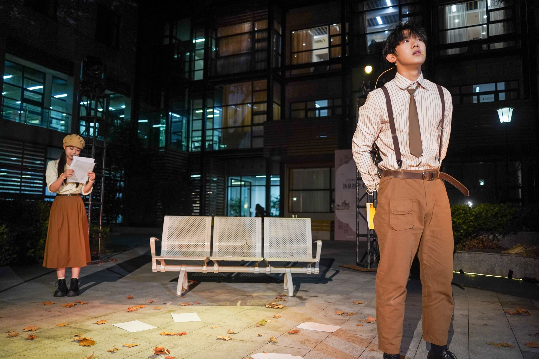 该剧由戏教系教师文滔编剧执导,戏教B2401班学生共创。作品以“车站候车”为场景,通过20分钟对话解构“灵魂伴侣”的理想形态,极简舞台设计让观众聚焦表演。主演房信瀚、赖彦琪以张力演绎,呈现角色情感从憧憬到幻灭的转变,引发对情感本质的思考。
