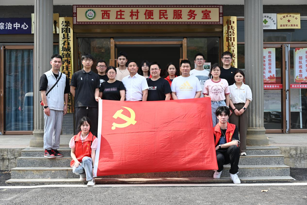 文化管理学院党员师生团队和崇阳县乡村振兴局徐局长、石城镇党委副书记李书记、驻村工作队及西庄村干部们在电商楼前合影留念,大家期待不久的将来能看见电商楼的正式投入使用,为西庄村带来新机遇!